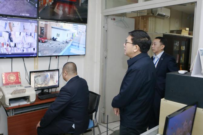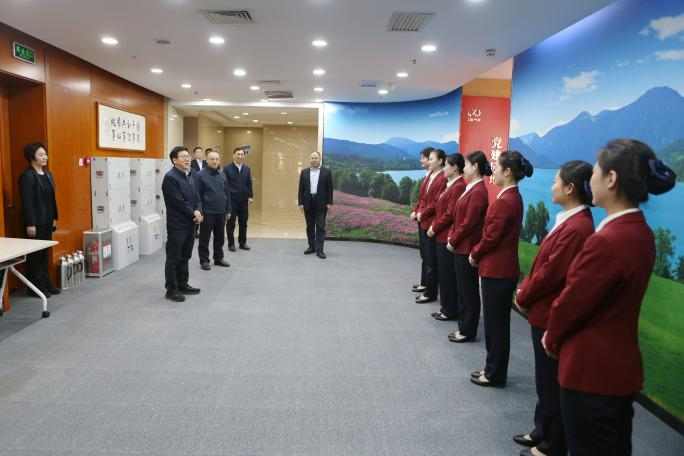 廖家生實地查看大廈運維安保情況 集團公司黨委辦公室、宣傳部以及服務公司等單位負責同志參加慰問檢查活動。