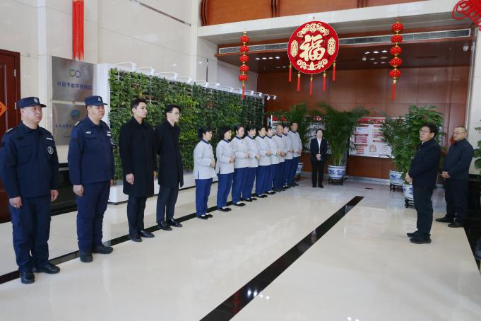 廖家生慰問看望服務公司一線職工 廖家生先后來到大廈二樓會議中心、一樓大廳和餐廳,與會服、安保、保潔、餐飲等單位工作人員親切交談,對大家一年來的熱情服務和辛勤勞動表示衷心感謝,向大家致以美好的新春祝福。在中控室、配電室以及燃氣鍋爐房等區域,廖家生親切看望慰問正在值班值守的工作人員,認真聽取介紹,仔細詢問各類設施設備的技術參數指標,深入了解設備的日常運行狀態、檢查檢修周期及具體落實情況,叮囑大家時刻繃緊安全這根弦,進一步強化責任意識,加強巡查巡檢頻次,嚴格遵守各項操作規程,確保各類設施設備安全穩定運行。他指出,各級領導干部要關心關愛一線工作人員,用心用情解決一線人員的實際需求,確保全體人員度過一個平安、祥和、歡樂的新春佳節。