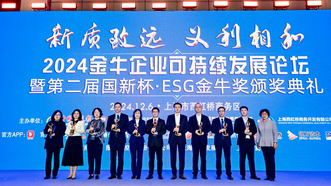 12月6日,由中國中證報和中國國新控股有限責任公司聯合主辦的“2024金牛企業可持續發展論壇暨第二屆國新杯ESG金牛獎頒獎典禮”在上海青浦區舉辦。公司副總經理、董事會秘書、總法律顧問郝家華受邀參加本次論壇。中節能環境2024年精心編制并首次公開披露的ESG報告,在本次論壇中喜獲國新杯“ESG金牛獎新銳二十強”榮譽稱號。