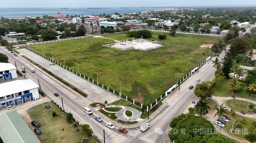 援湯加王陵項目位于湯加王國首都努庫阿洛法市中心,是湯加首都的地標性建筑,具有重要的文化和宗教意義。項目于2024年2月開工,2025年8月完成竣工驗收,建設內容包括王陵輔助用房、墓室墓道、圍擋圍墻、停車場及人行道。項目四個街角花園融入了湯加文化元素和精神文化地標,既可以保護美化湯加王室遺產,又可以改善區域旅游基礎設施,為當地百姓提供休閑活動場所。